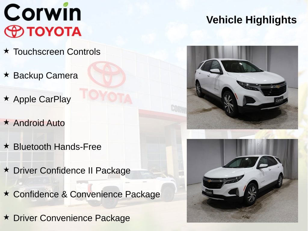 This Chevrolet Equinox is well equipped and includes the following features and benefits, Touchscreen Controls, Backup Camera, Apple CarPlay, Android Auto, Bluetooth Hands-Free, Confidence & Convenience Package, Driver Confidence II Package, Driver Convenience Package. Odometer is 13251 miles below market average! 25/30 City/Highway MPG