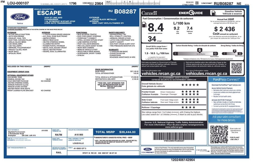 Priced below KBB Fair Purchase Price! 2024 Agate Black Metallic Ford Escape ST-Line CARFAX One-Owner. Clean CARFAX.
