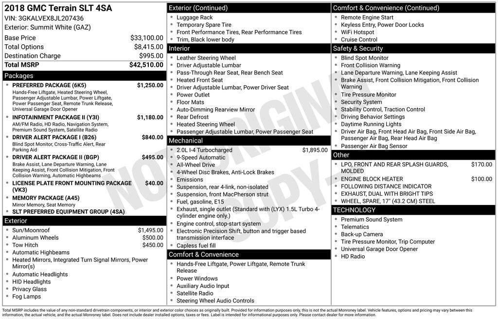 2018 Summit White GMC Terrain SLT Clean CARFAX.