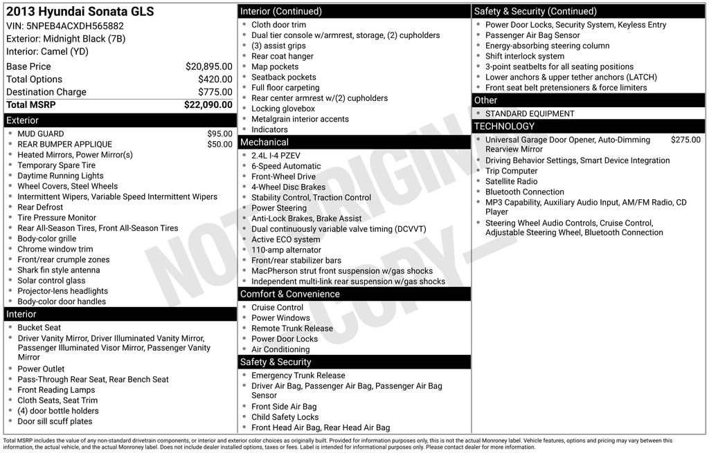 This 2013 Hyundai Sonata GLS is a well-equipped and well-maintained midsize sedan that offers excellent value and a host of desirable features. With its sleek, modern styling and impressive fuel efficiency, this Sonata is an exceptional choice for the savvy car buyer.