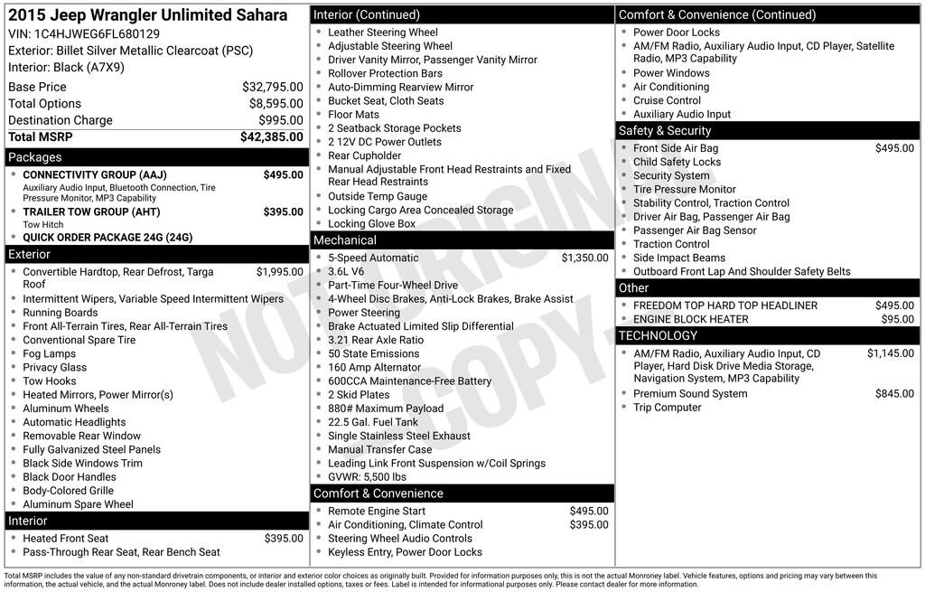 This Jeep Wrangler is well equipped and includes the following features and benefits, Heated Seats, Navigation System, 4x4 / 4 Wheel Drive / AWD, Class II Receiver Hitch, Connectivity Group, Tire Pressure Monitoring Display, Trailer Tow Group, Trailer Tow w/4-Pin Connector Wiring, Vehicle Information Center. Odometer is 15650 miles below market average!