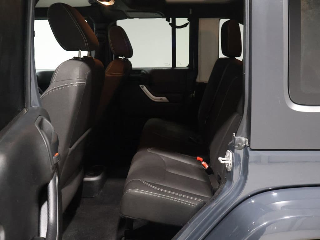 The Wrangler Unlimited Sahara's impressive list of features continues with the Rear Window Defroster, Black 3-Piece Hard Top, Freedom Panel Storage Bag, and Rear Window Wiper/Washer all designed to enhance your driving experience and provide unparalleled versatility.