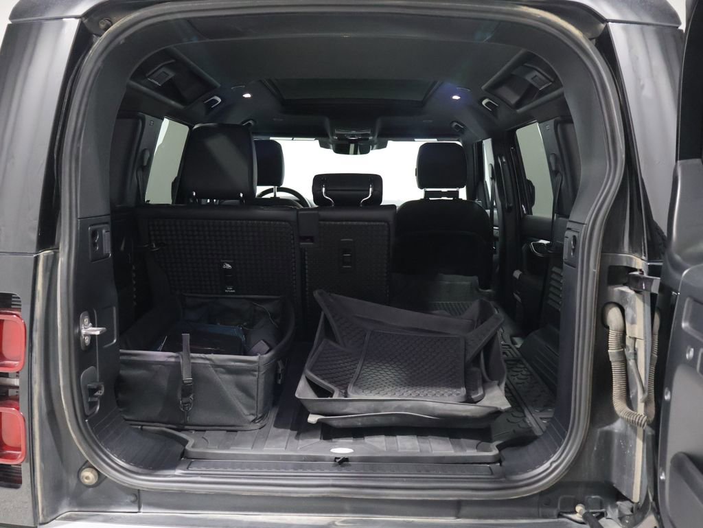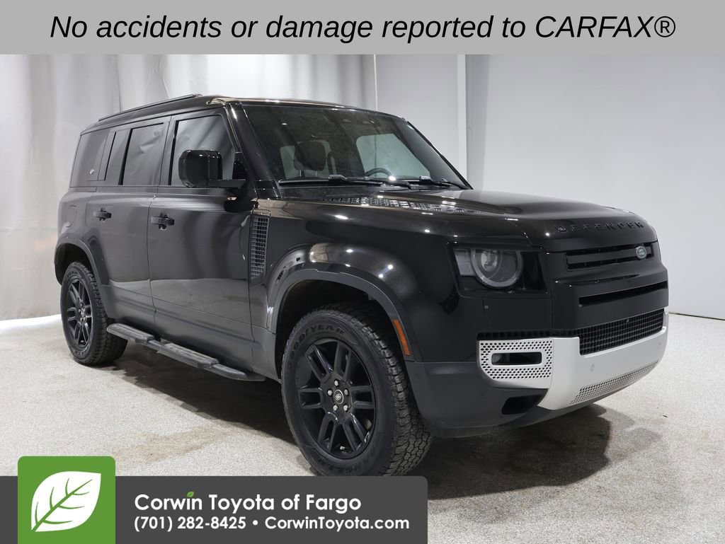 This Land Rover Defender 110 is well equipped and includes the following features and benefits, Heated Seats, Touchscreen Controls, Heads-Up Display, Backup Camera, Keyless Access with Push Button Start, Automatic Headlights, Apple CarPlay, Android Auto, Bluetooth Hands-Free, 4x4 / 4 Wheel Drive / AWD, Automatic temperature control, Front fog lights, Fully automatic headlights, Garage door transmitter: HomeLink, Heated steering wheel, Memory seat, Navigation system: Connected Navigation PIVI Pro, Power driver seat, Telescoping steering wheel, Wheels: 19" Gloss Sparkle Silver Style 6010. Odometer is 2721 miles below market average!