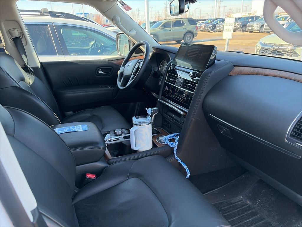 Stepping inside, you'll be surrounded by premium amenities that cater to your every need. The spacious and well-appointed interior features leather-appointed seating, a power driver's seat, and a memory function for your personalized settings. The Nissan Armada SL also boasts a state-of-the-art navigation system, a premium audio system with 13 speakers, and a panoramic sunroof to let in natural light.