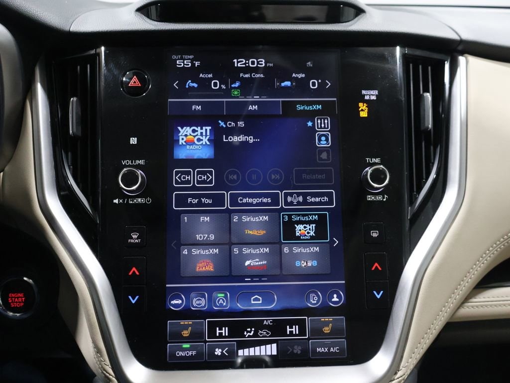 The Legacy Limited also boasts an array of premium amenities, including a Driver Monitoring System (DMS)/DriverFocus, a Power Moonroof, the Subaru STARLINK 11.6" Multimedia Nav System, a 360 Degrees Heated Steering Wheel, and a harman/kardon® surround sound system with 12 speakers and 576 watts of power. Elevate your commute with the convenience of wireless connectivity for Android Auto and Apple CarPlay, as well as SiriusXM® with 360L for endless entertainment.